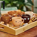 Chaque tasse a sa propre identité : une nuance, une forme et un visage différents. Elles sont fabriquées en céramique de haute qualité, avec une finition mate très agréable au toucher. Elles sont résistantes et passent au micro-ondes et au lave-vaisselle.
