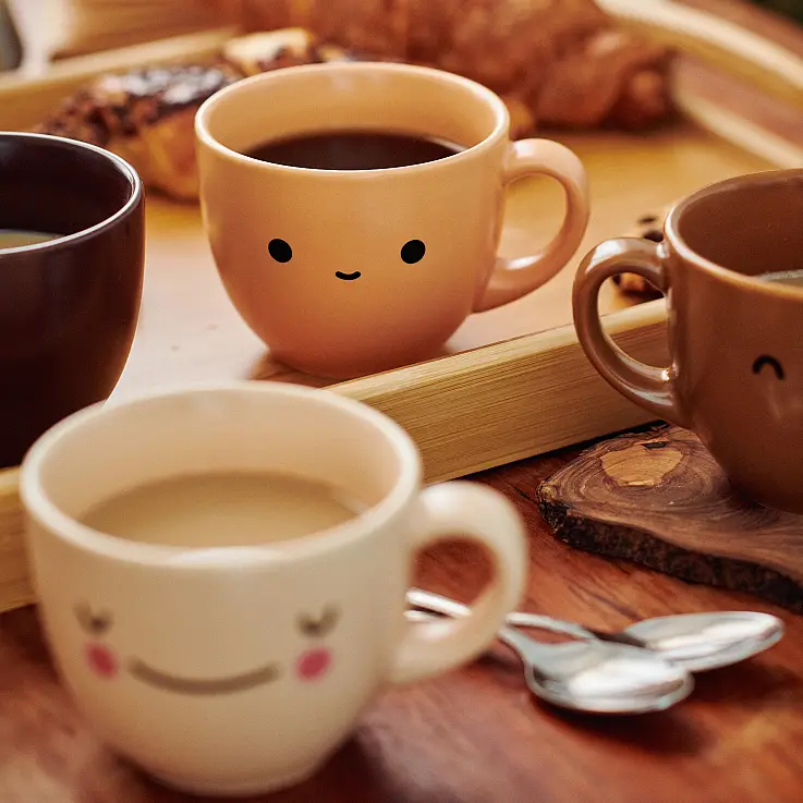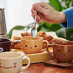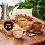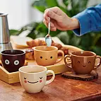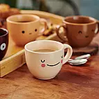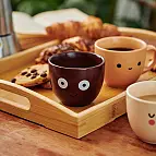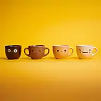 Chaque tasse a sa propre identité : une nuance, une forme et un visage différents. Elles sont fabriquées en céramique de haute qualité, avec une finition mate très agréable au toucher. Elles sont résistantes et passent au micro-ondes et au lave-vaisselle.