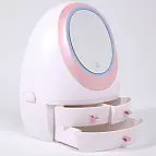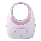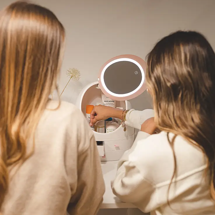 - Organiseur de maquillage avec miroir et lumière.